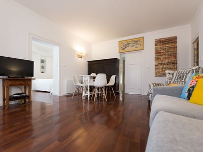 Decorado com simplicidade e bom gosto, o apartamento foi recentemente renovado e está completamente equipado. Tem aproximadamente 55 m², distribuídos por um quarto e uma sala de estar e jantar, sentando confortavelmente 4 pessoas. O quarto tem duas camas e o sofá da sala pode transformar-se em cama para acomodar mais duas pessoas.