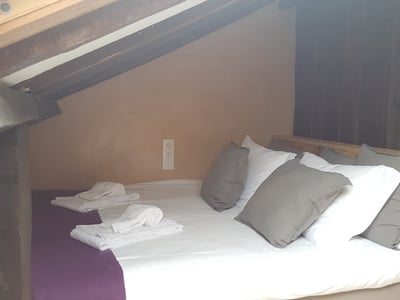 Apartamento duplex com uma cama de casal na mezzanine de águas furtadas, com ar condicionado, e uma cama single que se desdobra em cama de casal num quarto com vista para o casario alfacinha. A sala tem ar condicionado e zona de estar, com televisão de ecrã plano e canais por cabo, e uma mesa de refeições que senta até 4 pessoas. A cozinha dispõe de frigorífico e congelador, máquina de lavar loiça, máquina de lavar roupa, forno, fogão, máquina de café de êmbolo, chaleira. A casa de banho tem luz natural e duche.