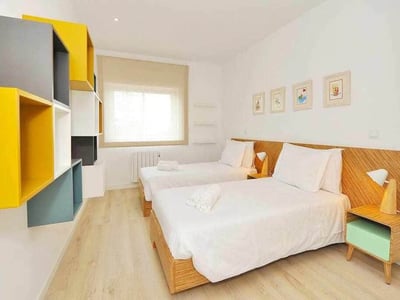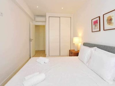 Dois Quartos com Cama de casal e Um Quarto com 2 camas individuais. Este apartamento tem muita luz natural, com grandes janelas em todas as divisões. Da sala de estar, ao final da tarde é possível apreciar um pôr do sol espetacular. Possui Wi-fi gratuito e HDTV de 50" com Netflix. Cozinha moderna, totalmente equipada, com máquina de lavar a roupa e louça, máquina de lavar loiça.