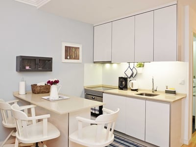 Provido de uma sala com sofá-cama, televisão de ecrã plano com canais de cabo, um quarto com cama de casal de 160 cm, secretária de trabalho e roupeiro, uma cozinha completa aberta para a sala com frigorífico, fogão, máquina lavar loiça, máquina de lavar roupa, forno e exaustor, e uma casa de banho com duche, o apartamento oferece todos os elementos para acolher devidamente quem planeia palmilhar a cidade das sete colinas ou simplesmente aninhar-se confortavelmente.